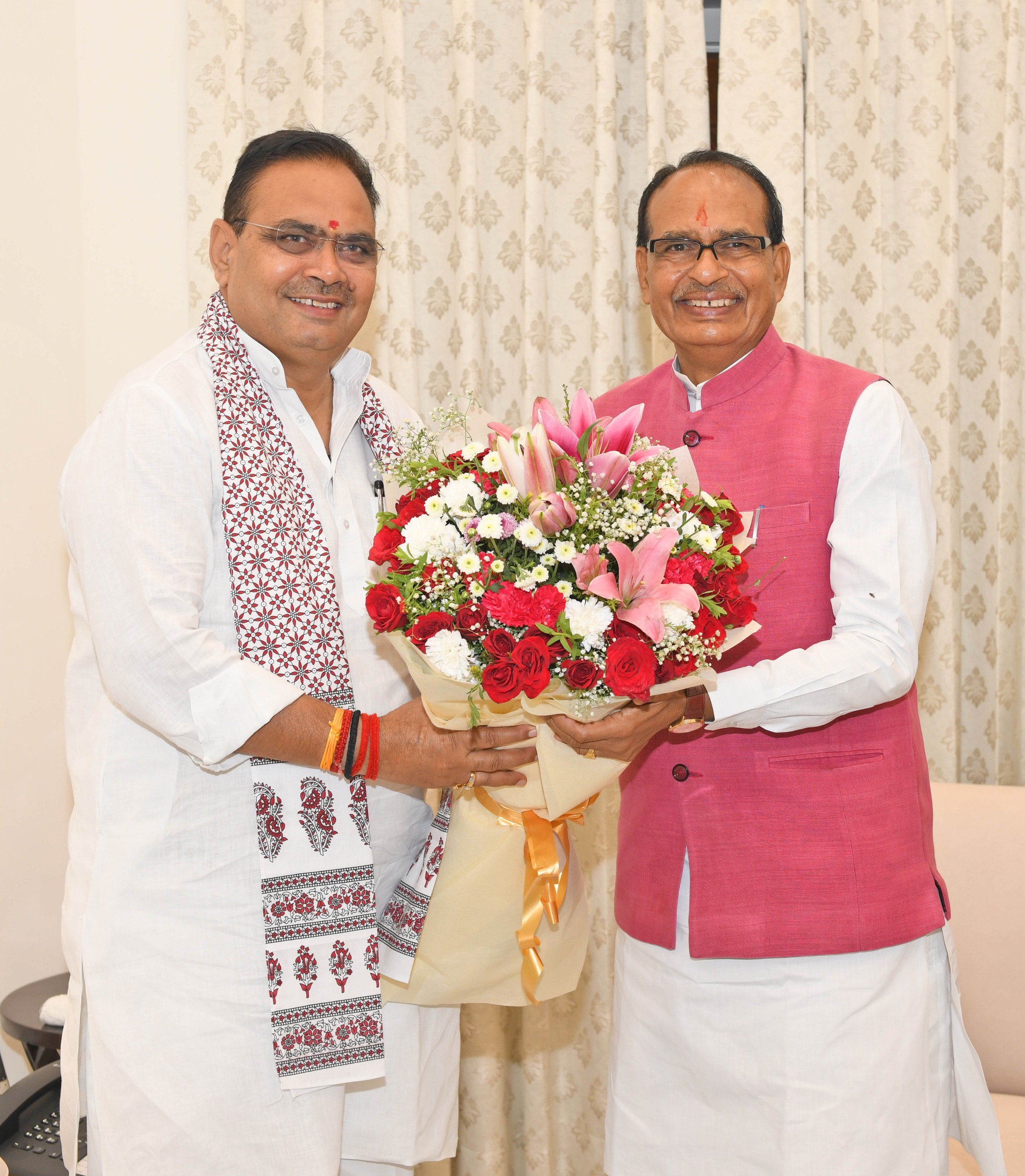मुख्यमंत्री भजनलाल से केंद्रीय मंत्री शिवराज सिंह ने की भेंट